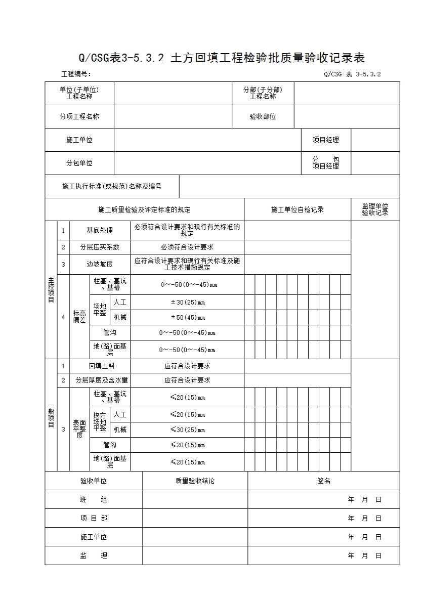 表格名称:QCSG 表 3-11.2.2 土方回填工程检验批质量验收记录表