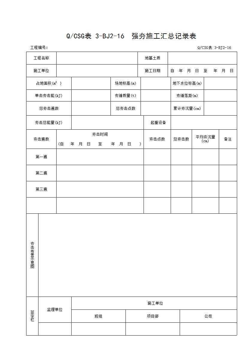 QCSG 表 3-BJ2-16 强夯施工汇总记录表
