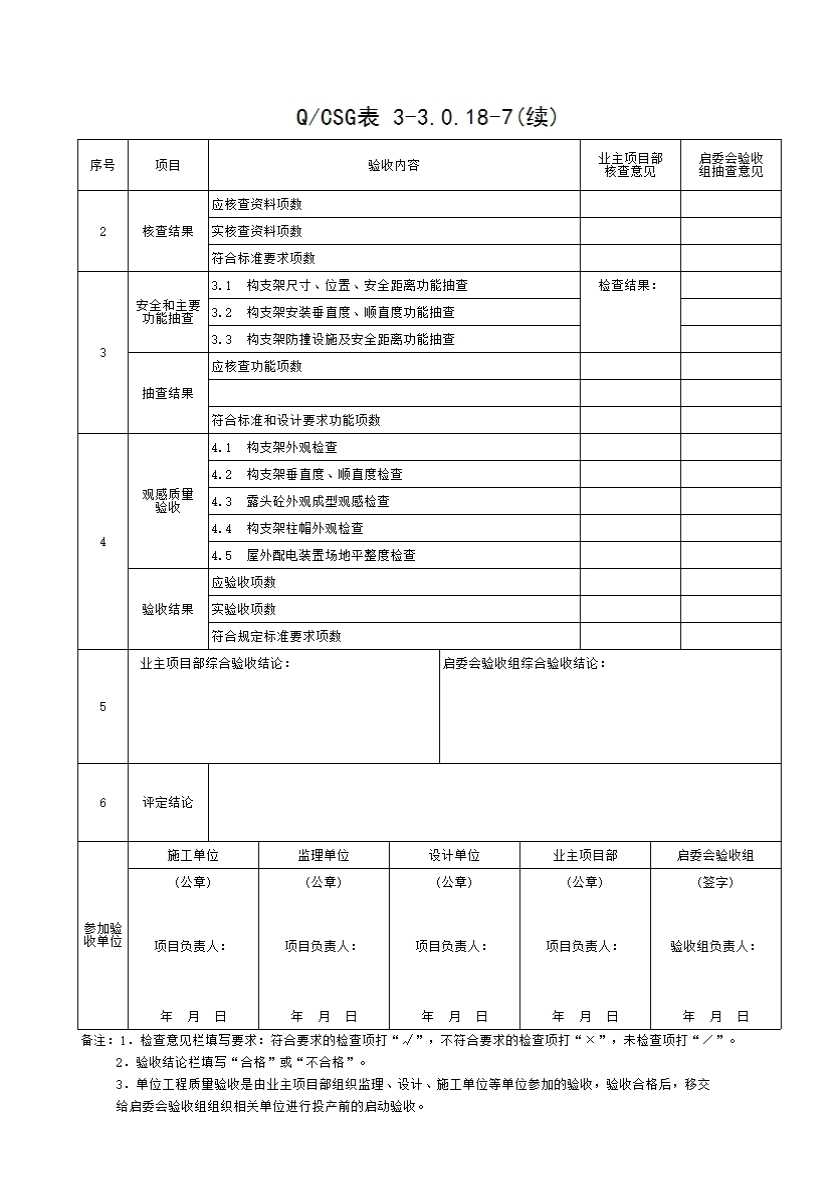 QCSG 表 3-3.0.18-7 220kV屋外配电装置 单位(子单位)工程质量验收与评定记录表