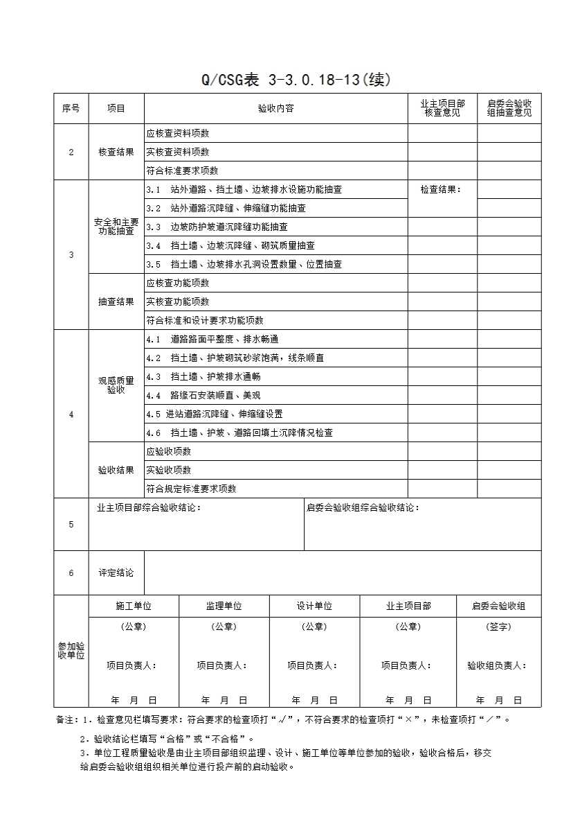 QCSG 表 3-3.0.18-13 进站道路 单位(子单位)工程质量验收与评定记录表