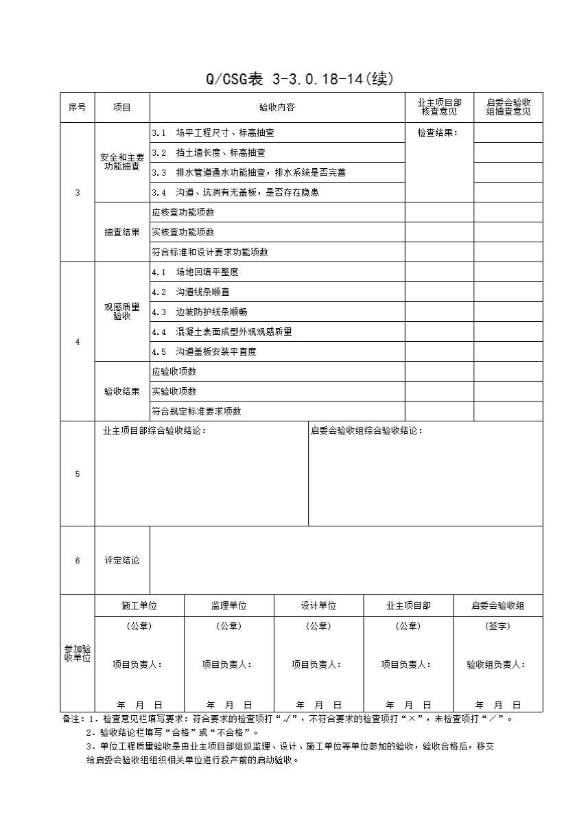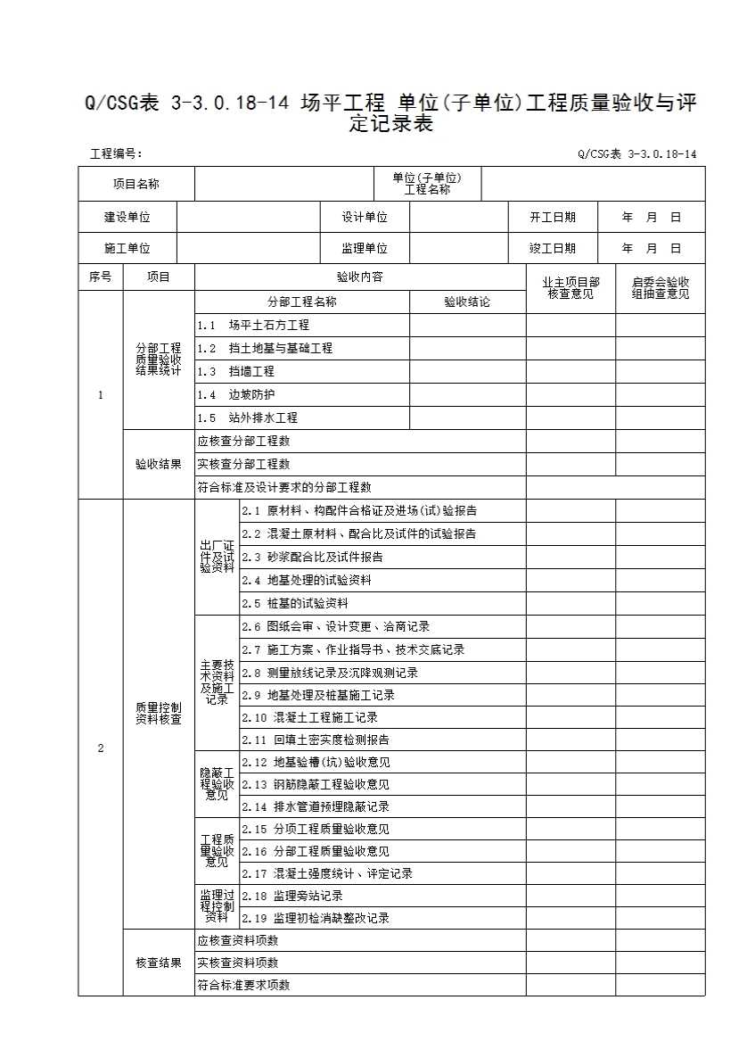 表格名称:QCSG 表 3-3.0.18-14 场平工程 单位(子单位)工程质量验收与评定记录表
