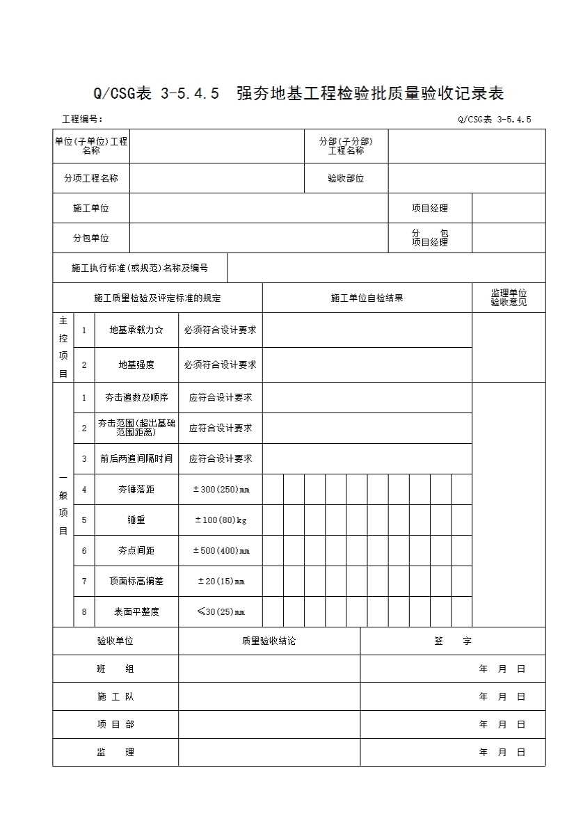QCSG 表 3-5.4.5 强夯地基工程检验批质量验收记录表