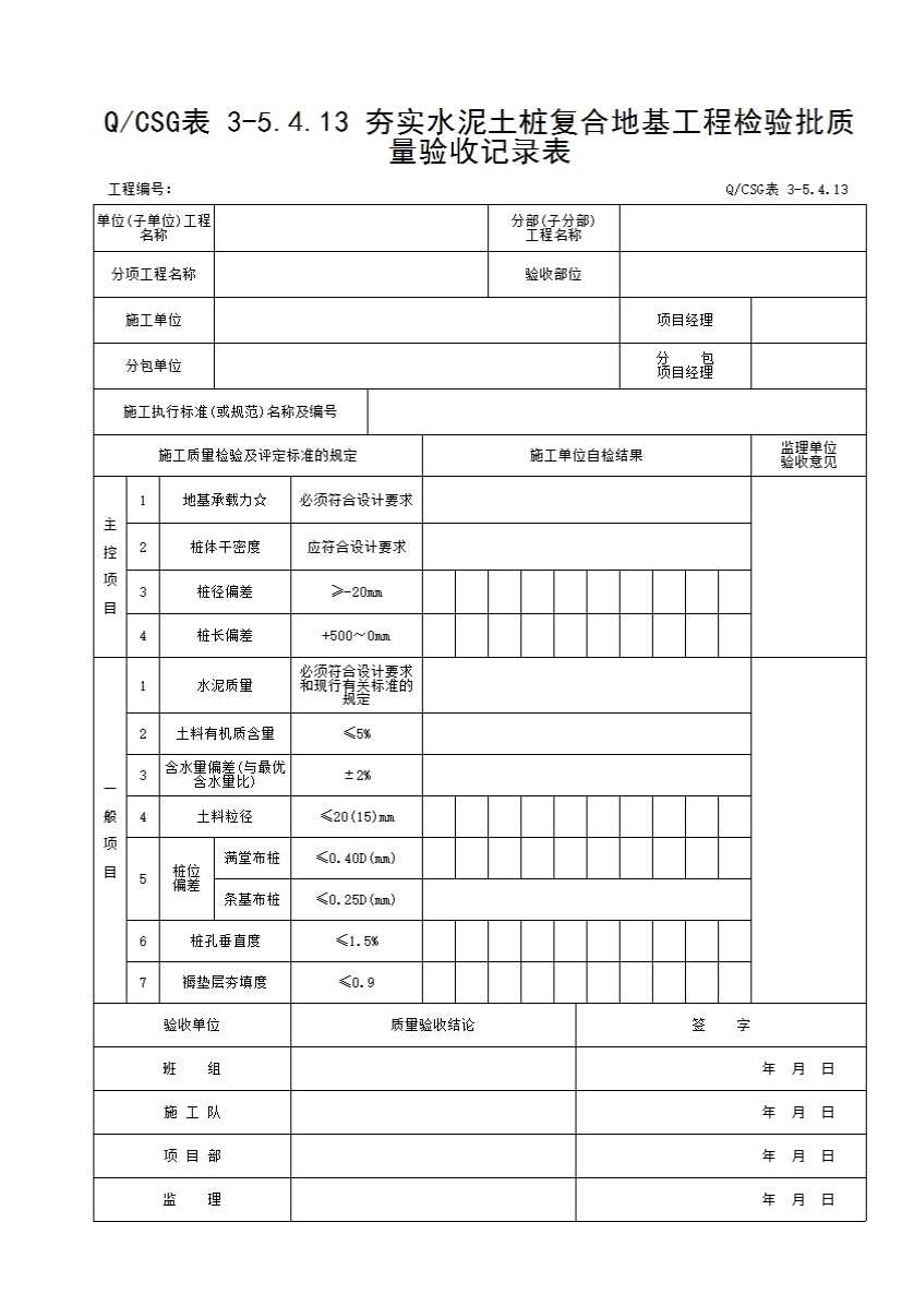 表格名称:QCSG 表 3-5.4.13 夯实水泥土桩复合地基工程检验批质量验收记录表
