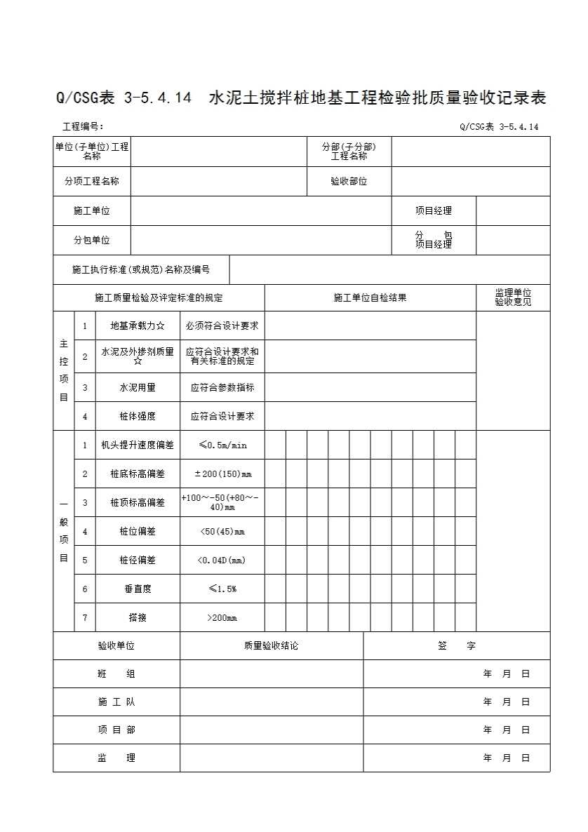 QCSG 表 3-5.4.14 水泥土搅拌桩地基工程检验批质量验收记录表
