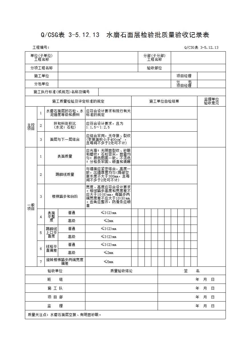 QCSG 表 3-5.12.13 水磨石面层检验批质量验收记录表
