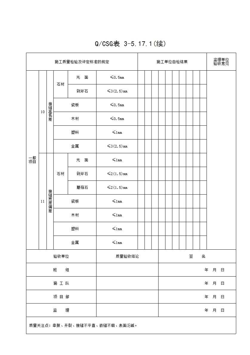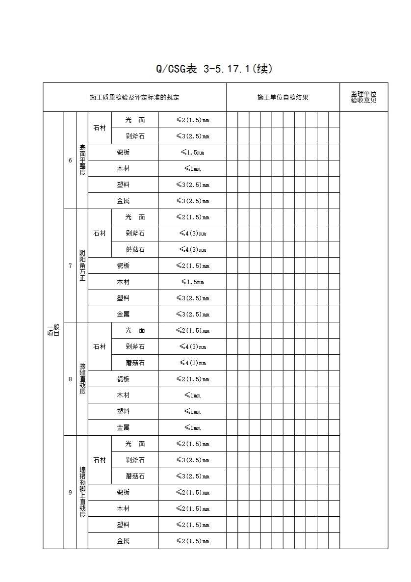 QCSG 表 3-5.17.1 饰面板安装工程检验批质量验收记录表