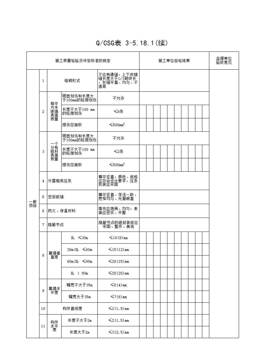 表格名称:QCSG 表 3-5.18.1 明框玻璃幕墙工程检验批质量验收记录表