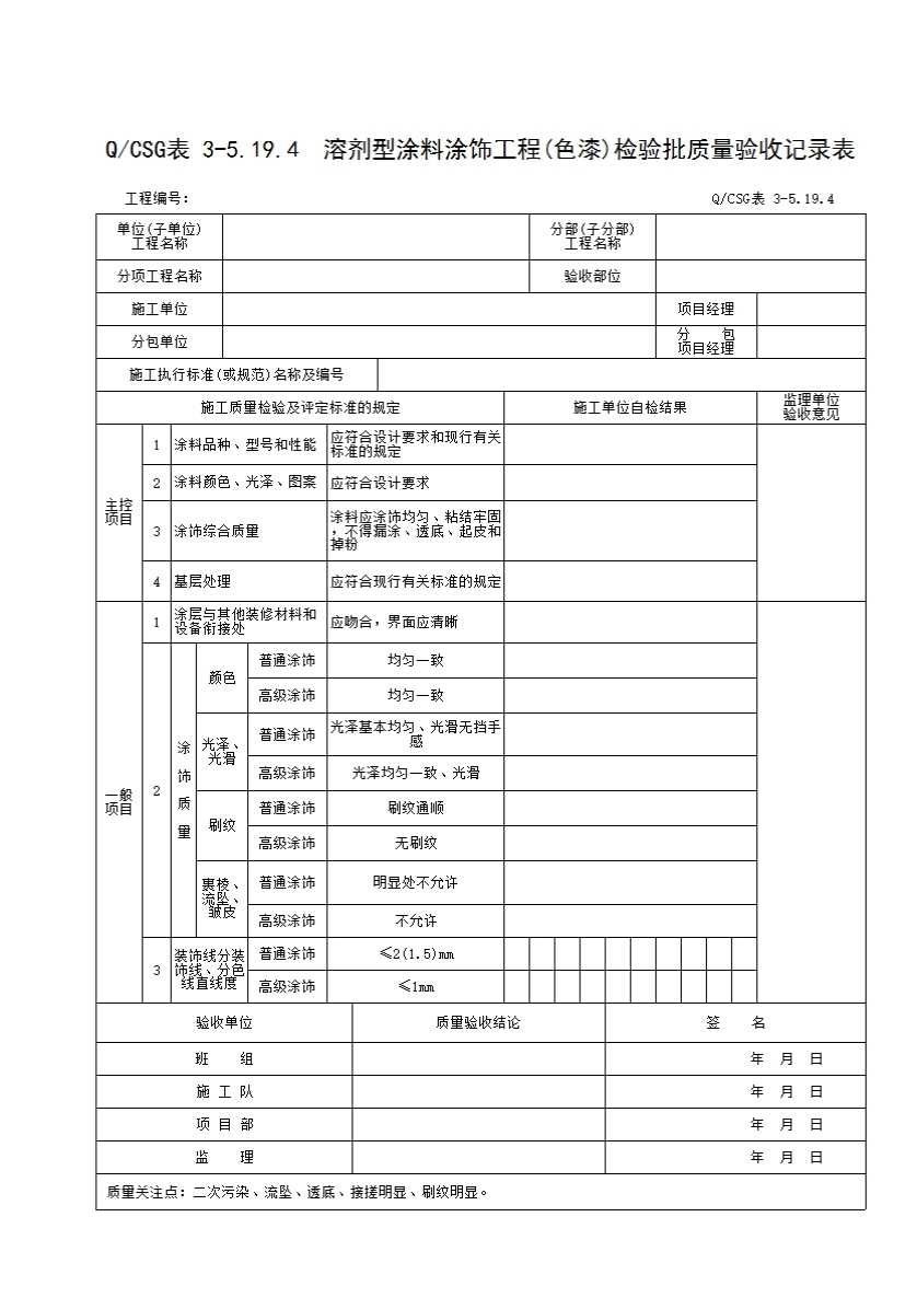 QCSG 表 3-5.19.4 溶剂型涂料涂饰工程(色漆)检验批质量验收记录表