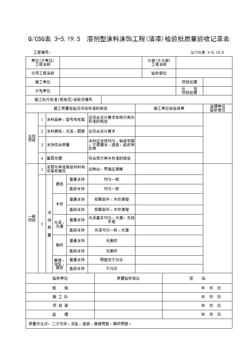 表格名称:QCSG 表 3-5.19.5 溶剂型涂料涂饰工程(清漆)检验批质量验收记录表