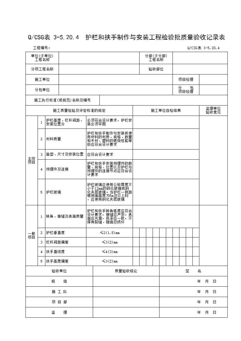 QCSG 表 3-5.20.4 护栏和扶手制作与安装工程检验批质量验收记录表