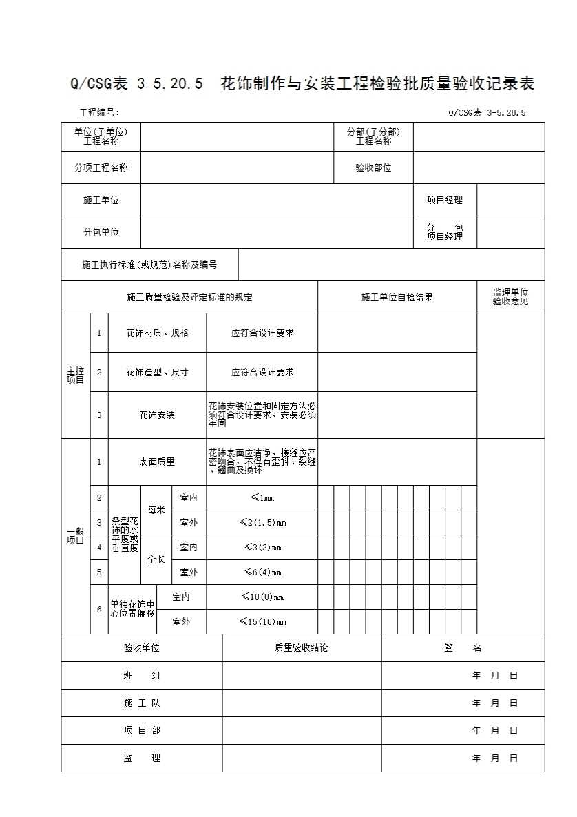 QCSG 表 3-5.20.5 花饰制作与安装工程检验批质量验收记录表