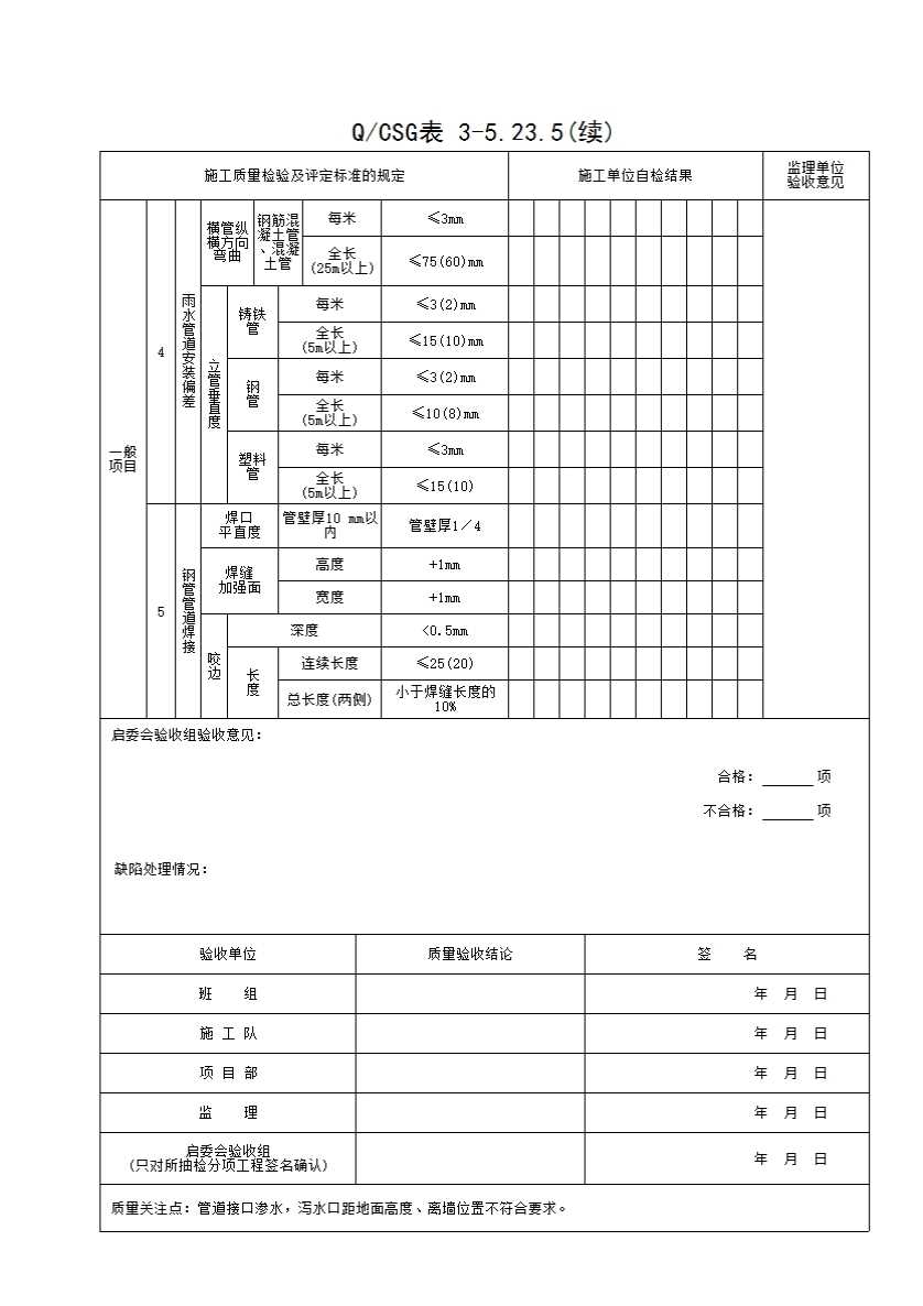 QCSG 表 3-5.23.5 雨水管道及配件安装检验批质量验收记录表
