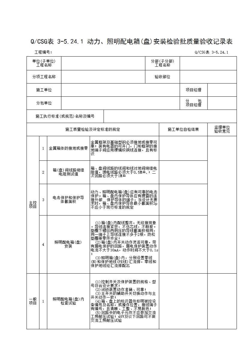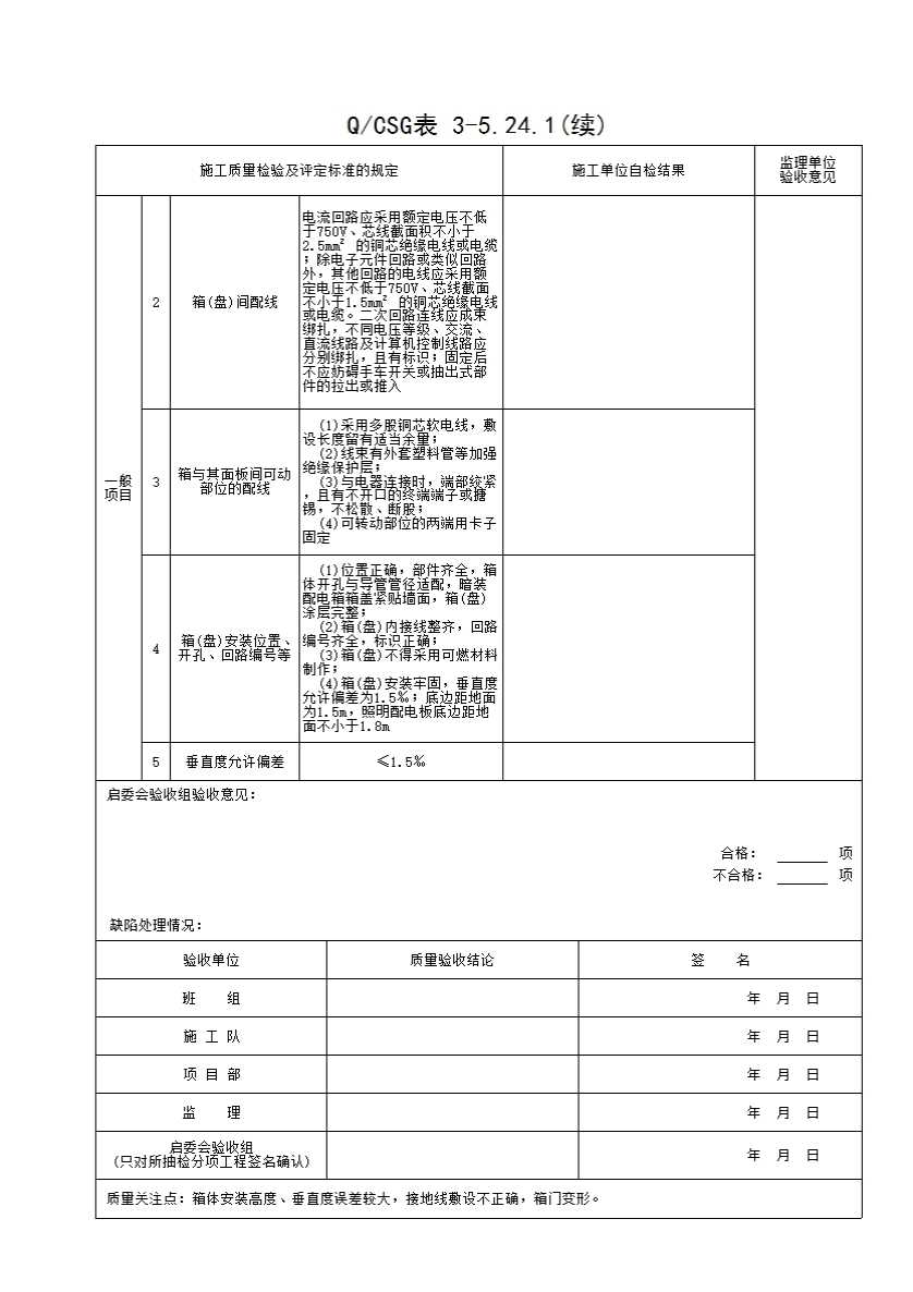 QCSG 表 3-5.24.1 动力、照明配电箱(盘)安装检验批质量验收记录表