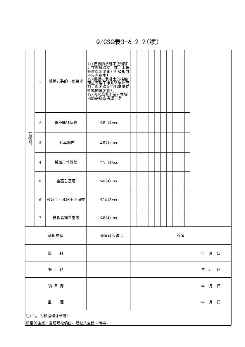表格名称:QCSG 表 3-6.2.2 构支架(直埋地脚螺栓)基础模板安装工程检验批质量验收记录表