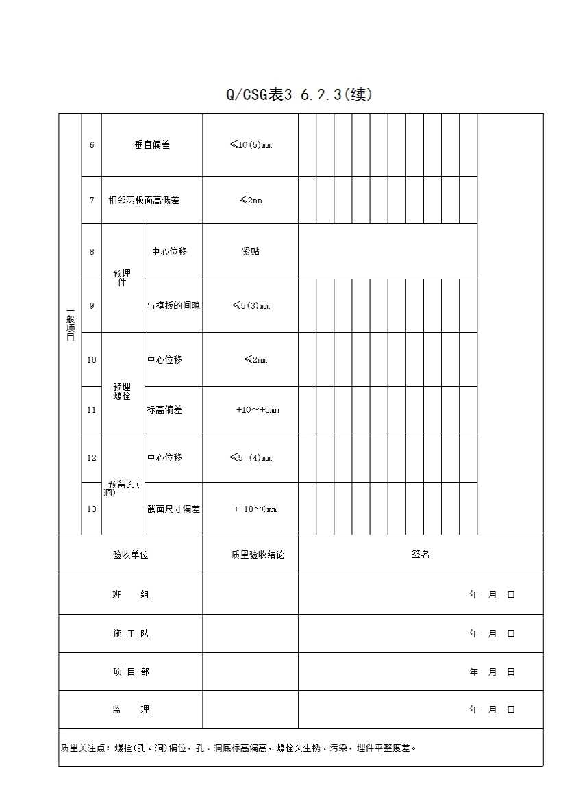 QCSG 表 3-6.2.3 设备基础模板安装工程检验批质量验收记录表