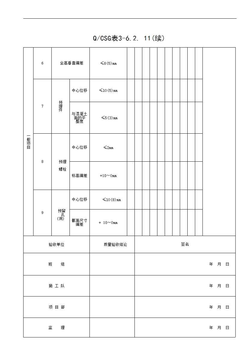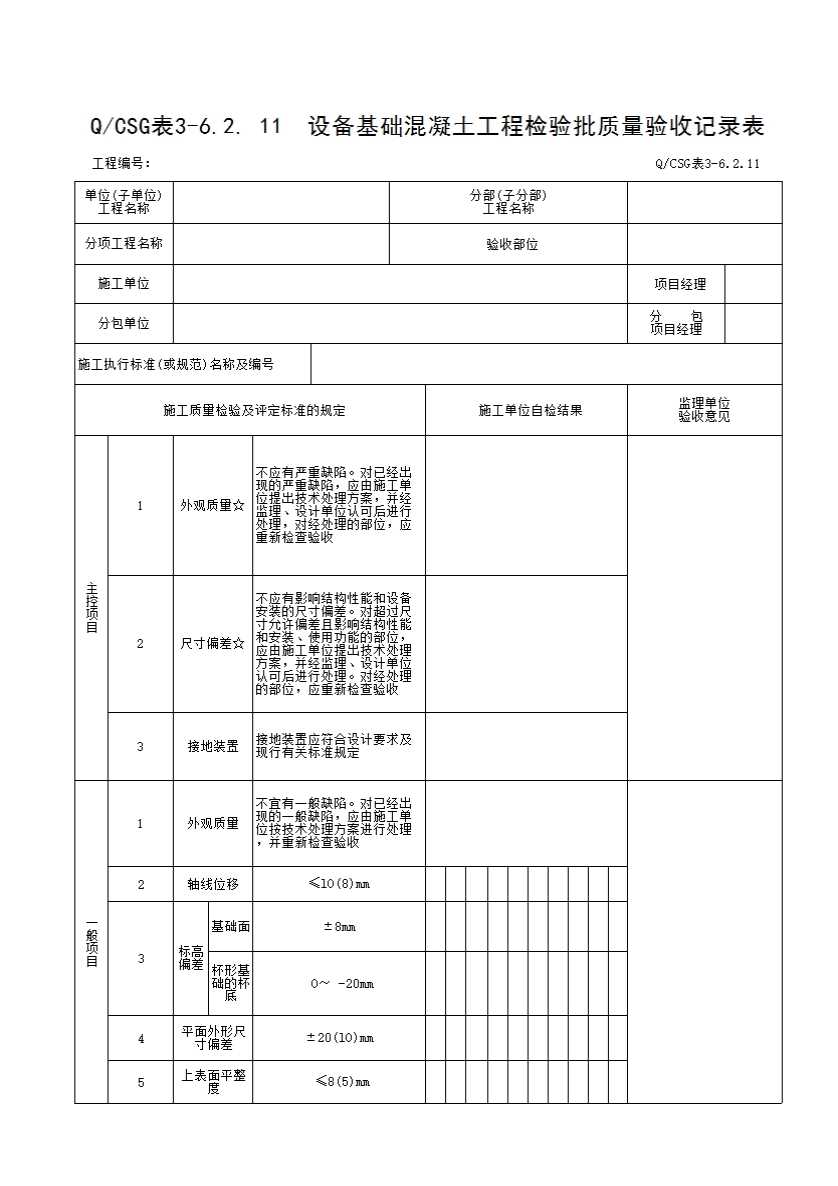 QCSG 表 3-6.2.11 设备基础混凝土工程检验批质量验收记录表