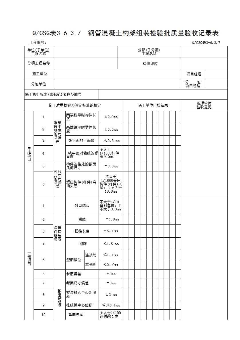 QCSG 表 3-6.3.7 钢管混凝土构架组装检验批质量验收记录表