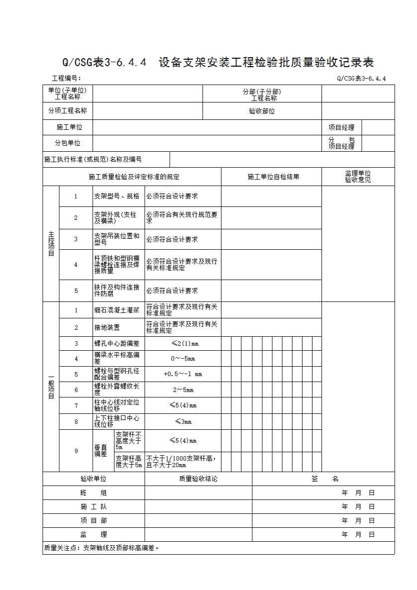 QCSG 表 3-6.4.4 设备支架安装工程检验批质量验收记录表