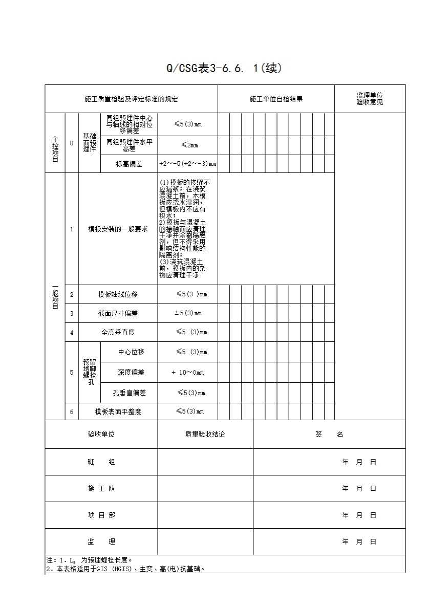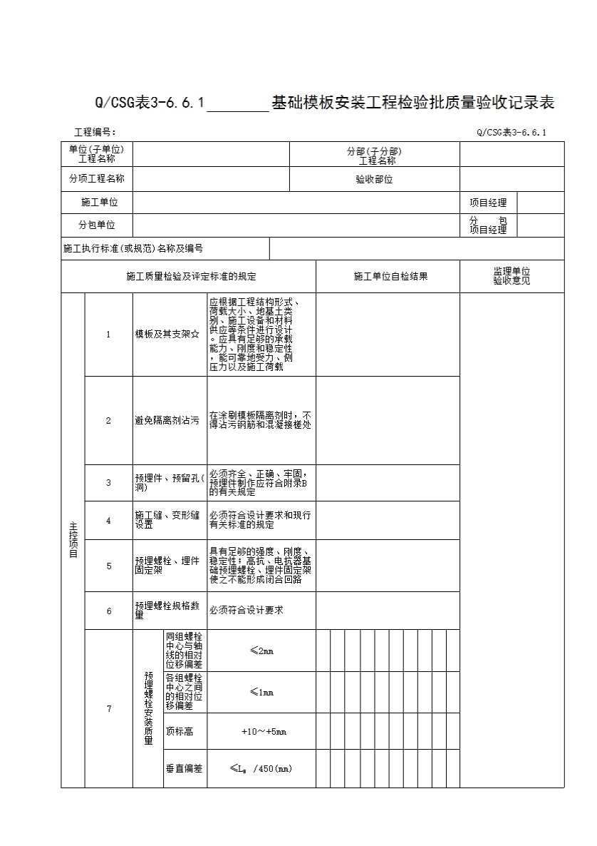 QCSG 表 3-6.6.1 基础模板安装工程检验批质量验收记录表