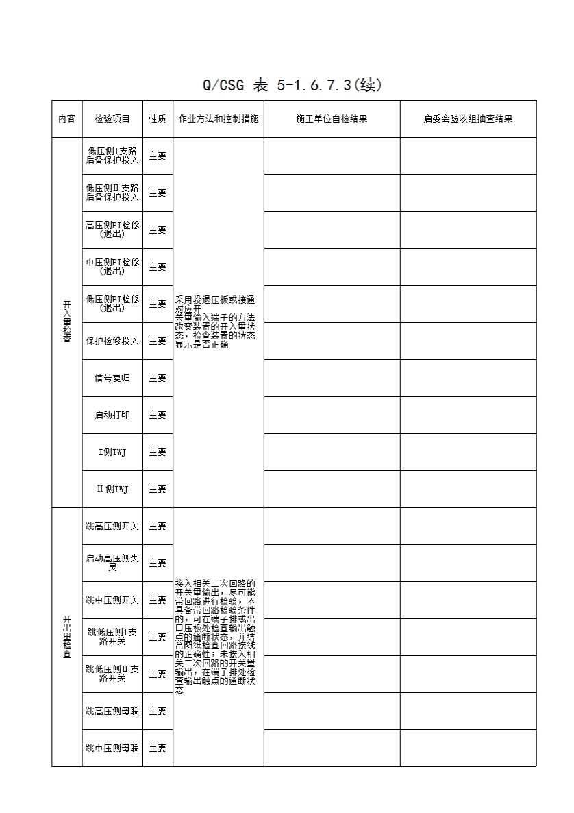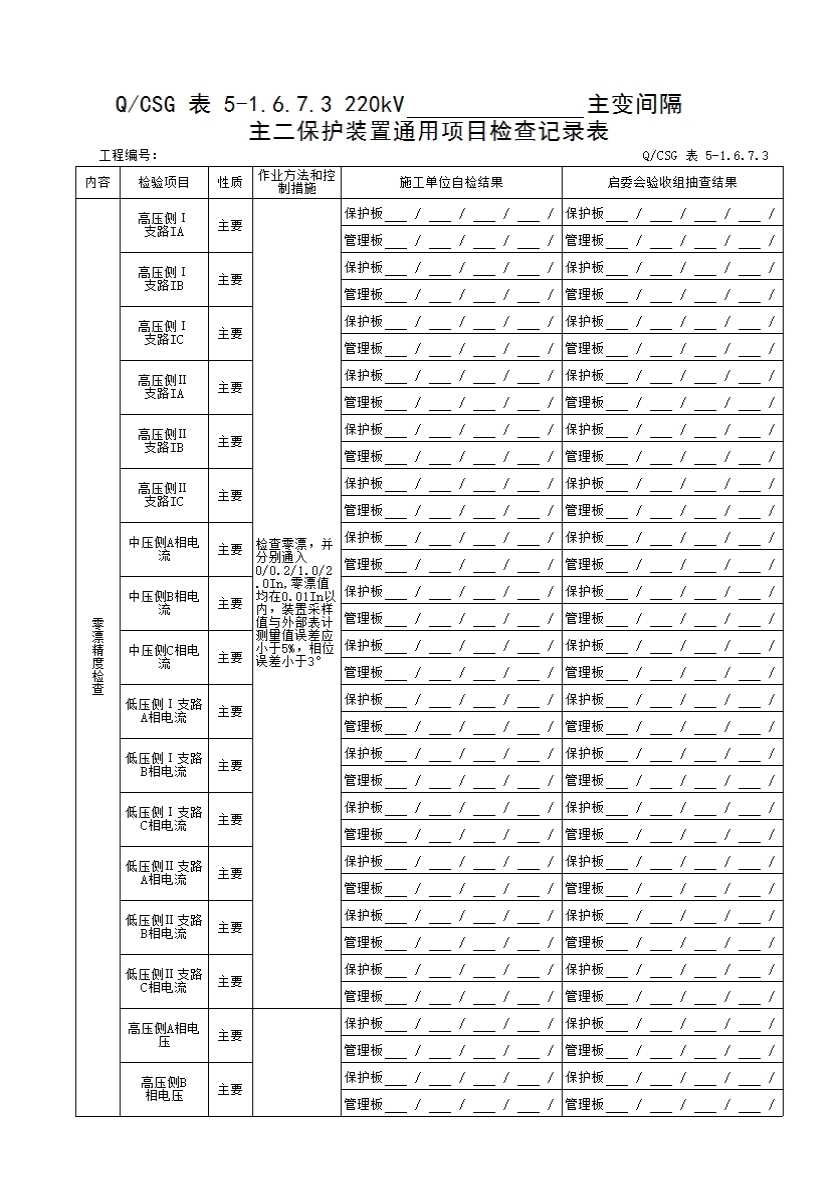 QCSG 表 5-1.6.7.3 220kV_____主变间隔 主二保护装置通用项目检查记录表