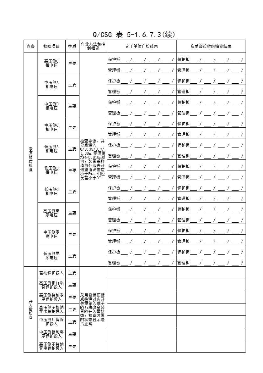 附录B 变电继电保护 分部、分项工程质量验收记录表