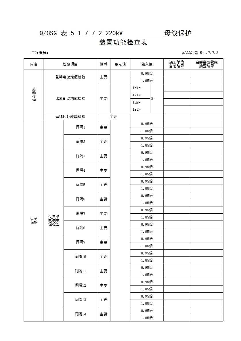表格名称:QCSG 表 5-1.7.7.2 220kV_____母线保护装置功能检查表