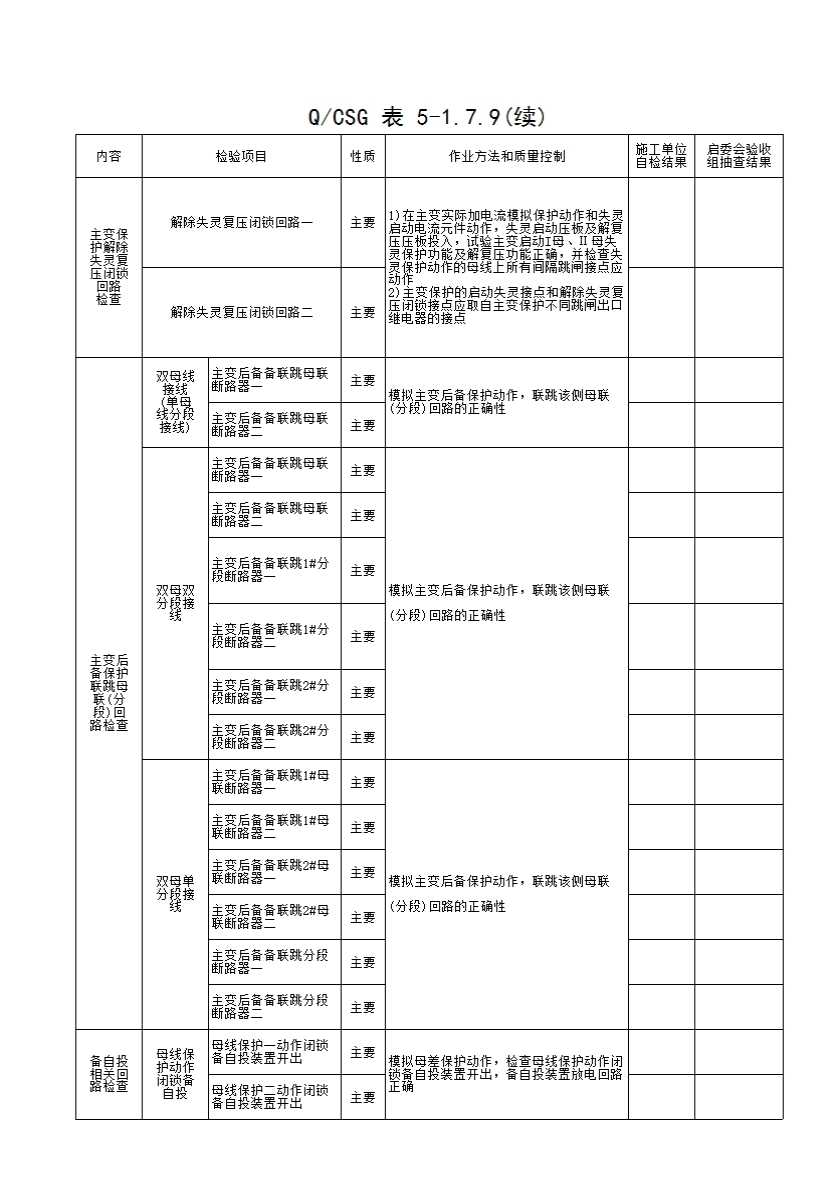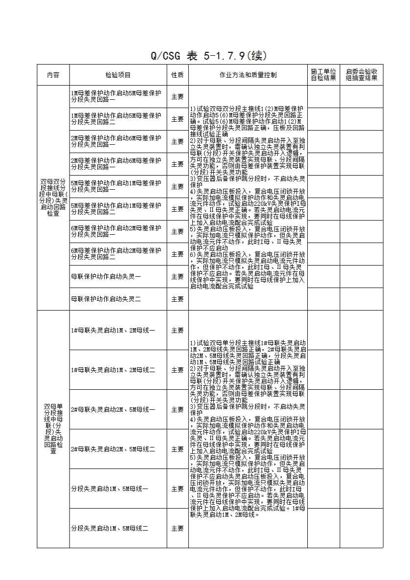 QCSG 表 5-1.7.9 220kV_____母线保护 重点回路检查 分项工程质量验收记录表