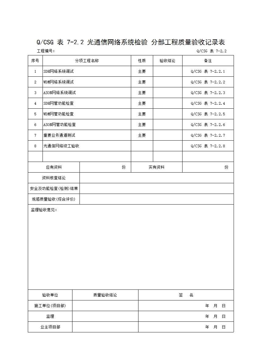 表格名称:2.2 光通信网络系统检验 分部工程质量验收记录表
