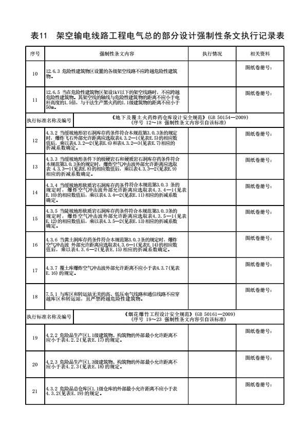 表格名称:表11 架空输电线路工程电气总的部分设计强制性条文执行记录表