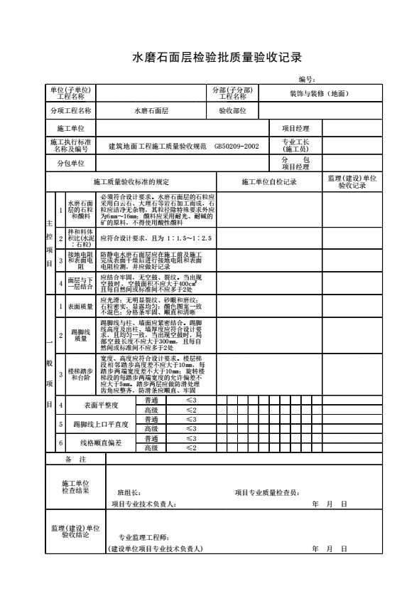 表格名称:水磨石面层检验批质量验收记录
