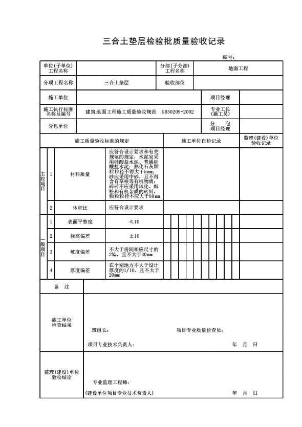 表格名称:三合土垫层检验批质量验收记录