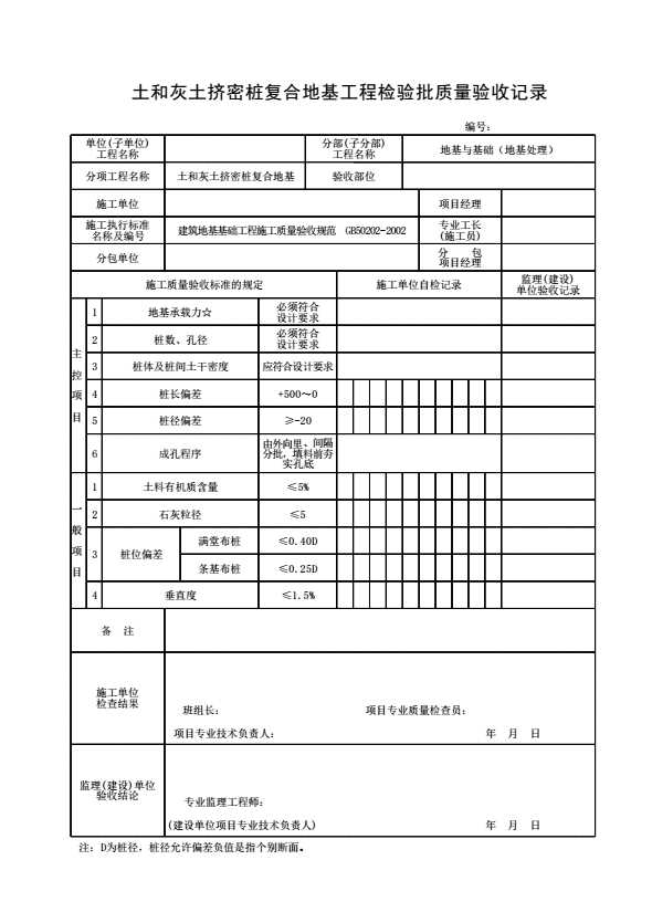 表格名称:土和灰土挤密桩复合地基工程检验批质量验收记录