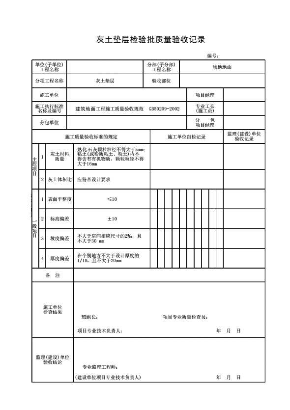 灰土垫层检验批质量验收记录