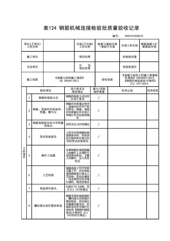 表格名称:090101060210 钢筋机械连接检验批质量验收记录