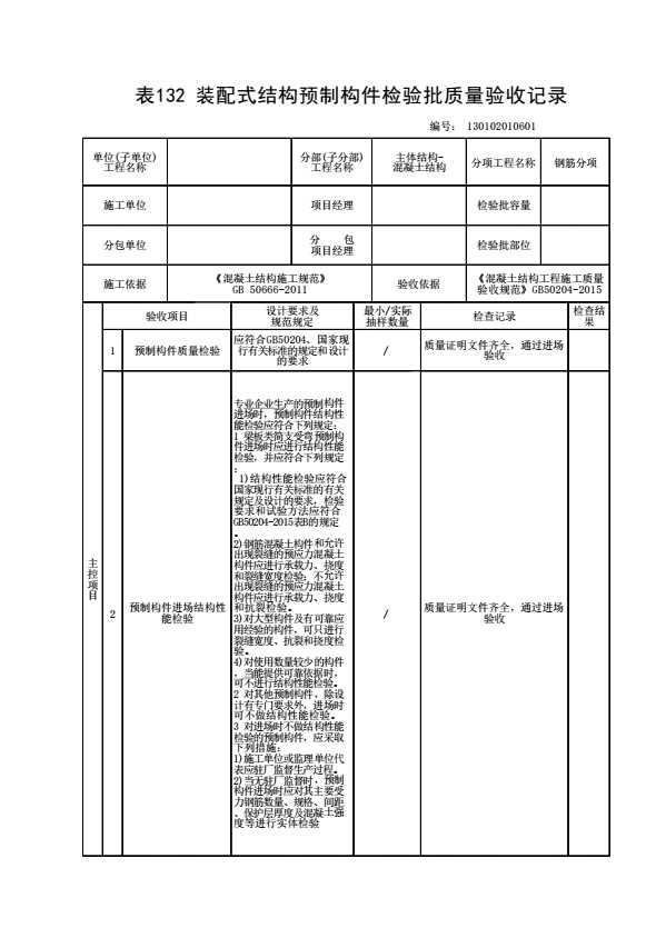 130102010601 装配式结构预制构件检验批质量验收记录