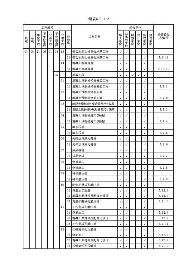 表格名称:表4.0.1-2 通用工程质量验收范围划分表