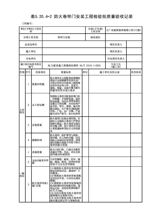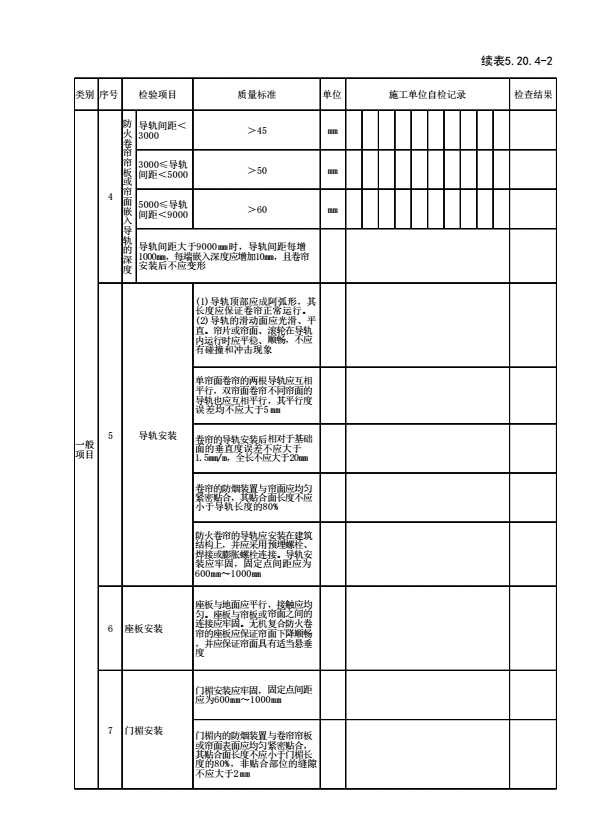 表格名称:表5.20.4-2 防火卷帘门安装工程检验批质量验收记录
