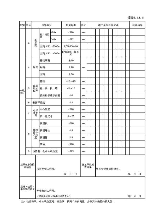 [符合表5.12.11 ]表6.2.7混凝土外观及尺寸偏差检验批质量验收记录