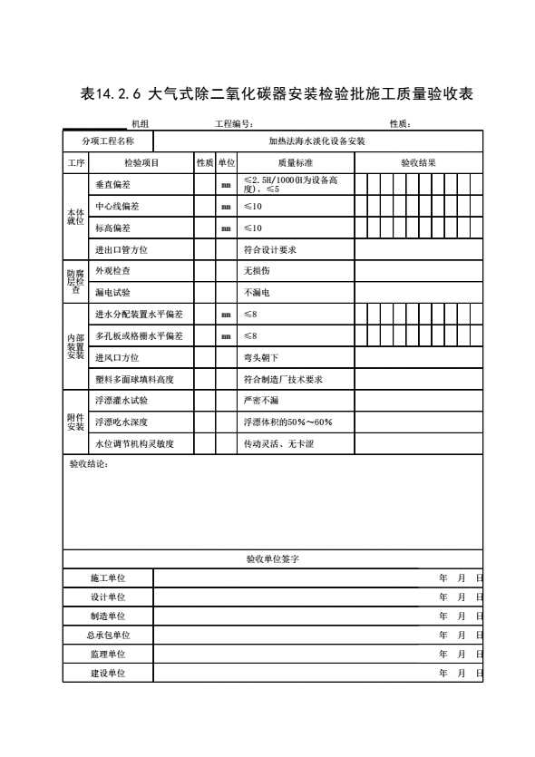 表格名称:表14.2.6 大气式除二氧化碳器安装检验批施工质量验收表
