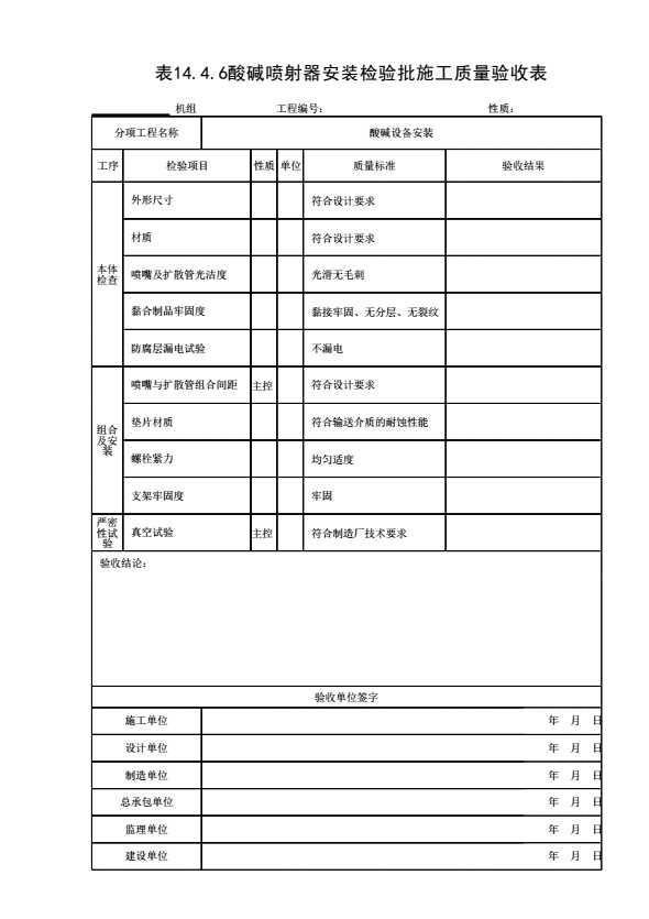 表格名称:表14.4.6 酸碱喷射器安装检验批施工质量验收表