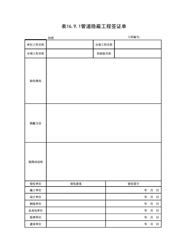 表16.9.1 管道隐蔽工程签证单