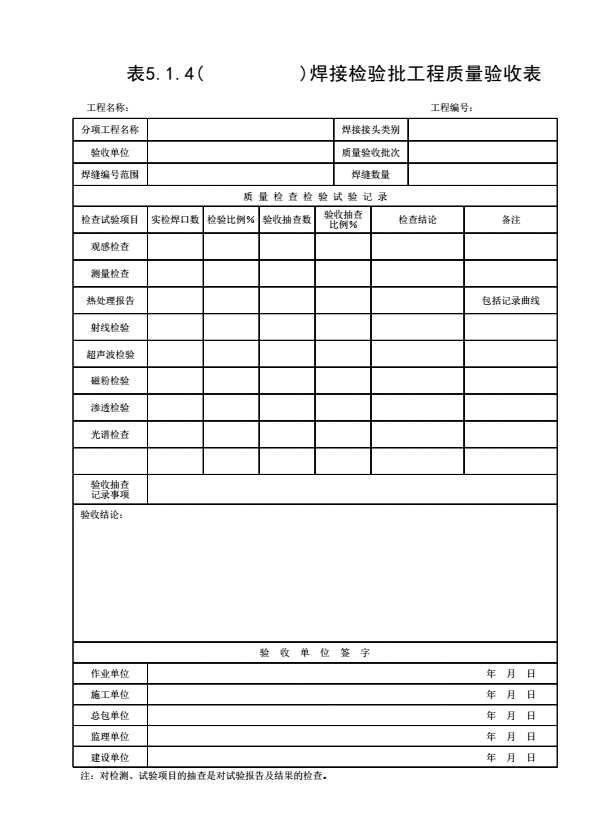 表格名称:表5.1.4()焊接检验批工程质量验收表