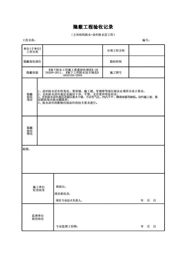 表格名称:隐蔽工程验收记录(主体结构防水-涂料防水层工程)