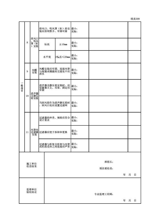 表格名称:020106030301 风管系统安装检验批质量验收记录(送风系统)