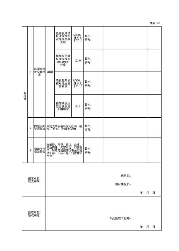 表格名称:100202050105 压型金属板(墙面)检验批质量验收记录