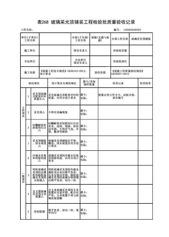表格名称:140204040401 玻璃采光顶铺装工程检验批质量验收记录