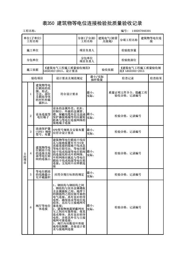 表格名称:140207040301 建筑物等电位连接检验批质量验收记录