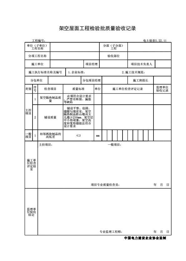 表格名称:电土验表5.22.11 架空屋面工程检验批质量验收记录