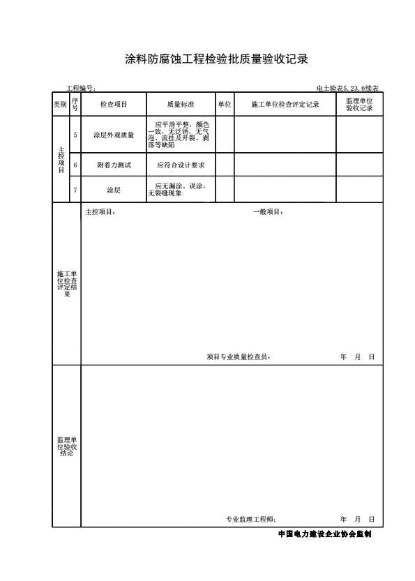 表格名称:电土验表5.23.6 涂料防腐蚀工程检验批质量验收记录