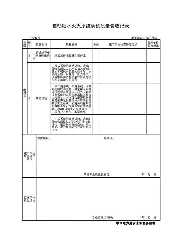 表格名称:电土验表5.33.7 自动喷水灭火系统调试质量验收记录